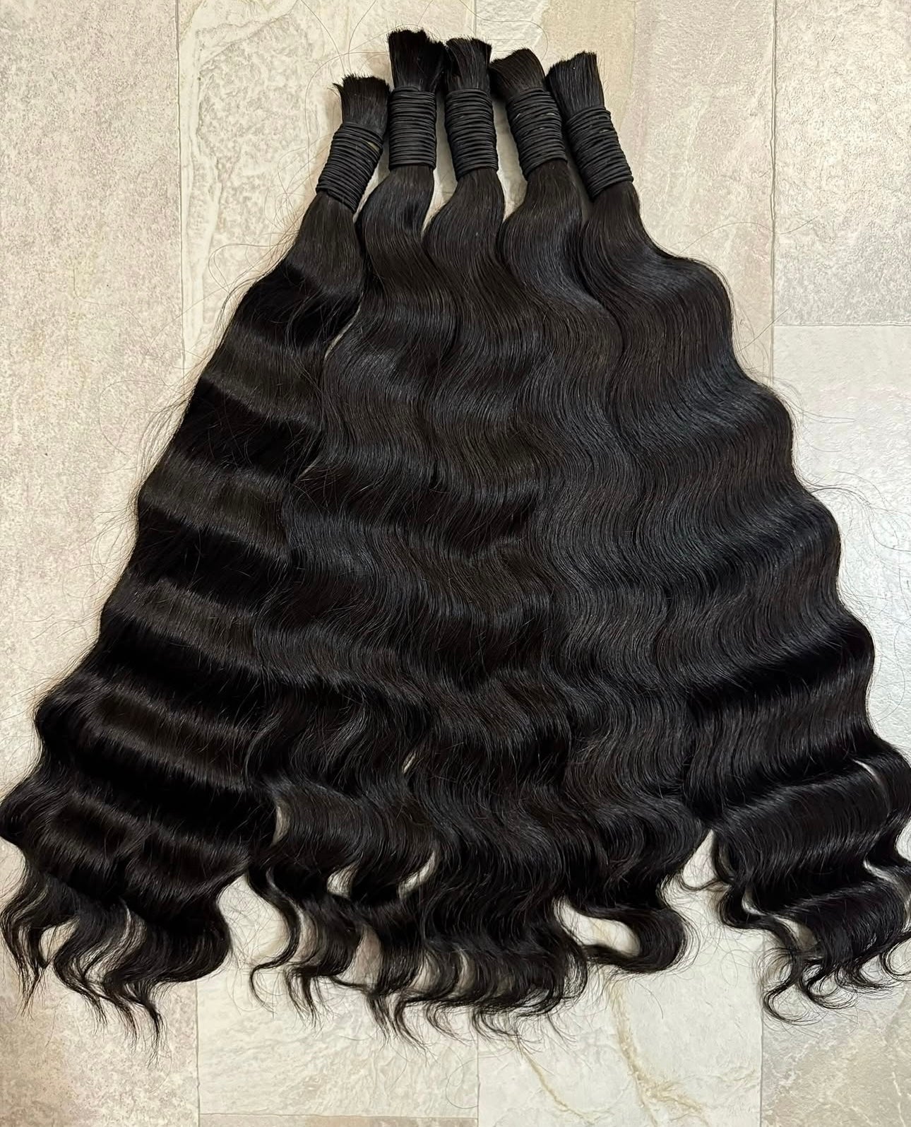 Fluffy, flowy, and made to slay. Our Loose Wave Bulk Hair is 100% raw, unprocessed Indonesian human hair. Its an healthier alternative to synthetic hair and won’t put harsh chemicals on your scalp. This braid-ready texture gives the perfect soft wave pattern for boho knotless braids, boho locs, feed-ins, and more.